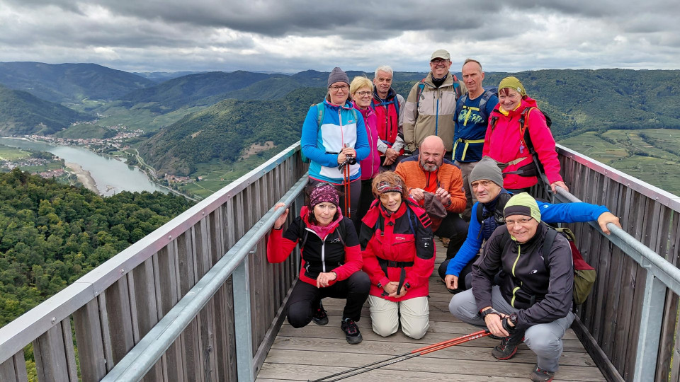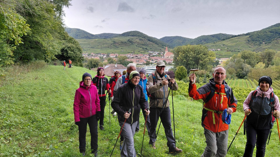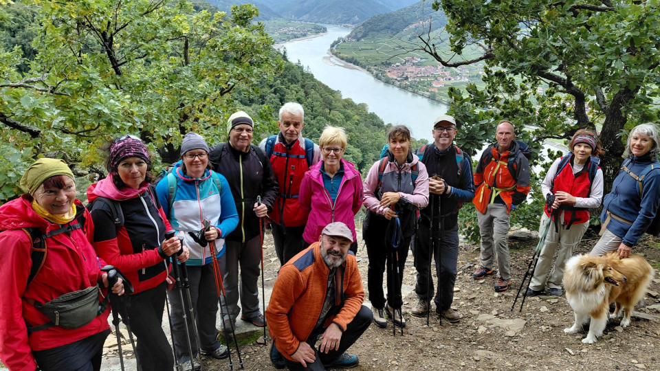 Von St. Lorenz wanderten wir auf dem Welterbesteig durch die idyllisch anmutende Landschaft der Wachau hoch zur Hirschwand (625m), deren letzte Höhenmeter wir seilversichert auf einem Klettersteig (A) bezwangen.